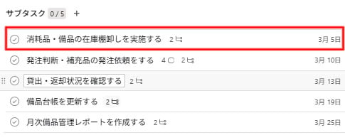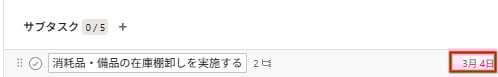 サブタスクの期日を確認すると、3/5(木)から3/4(水)に変更されています。