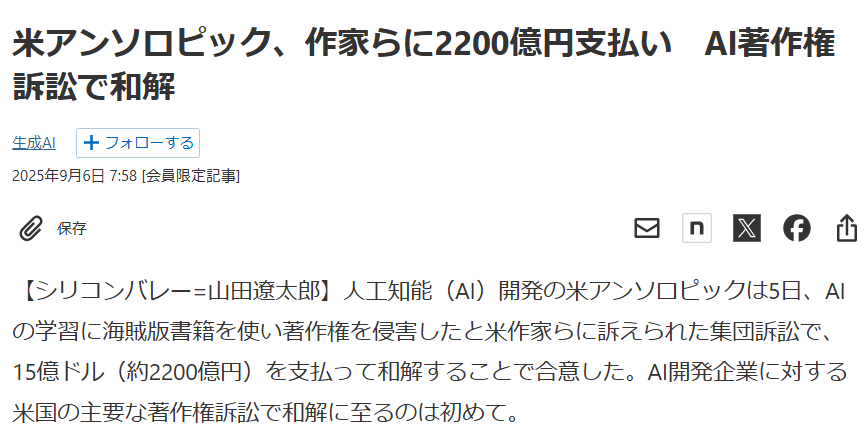 Anthropicが著者たちと約15億ドルで和解した事件は、AI産業における「知の資本化」を決定的に可視化しました。1冊あたり3,000ドルという数字は、単なる損害賠償ではありません。それは「創作物がAIに学ばれる権利の価格」であり、データガバナンスの実コスト構造が初めて明らかになった瞬間でした。