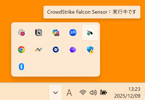 対して、CrowdStrike Falconは徹底して「サイレント」です。 裏側では高度な振る舞い検知AIが稼働し、不審なプロセスをブロックし、ログをクラウドへ送信しているはずですが、ユーザー(私)の画面には何も起きません。