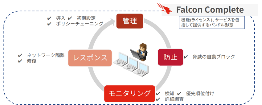 そこで注目されているのが、CrowdStrike Falcon Complete(ファルコン・コンプリート)です。
