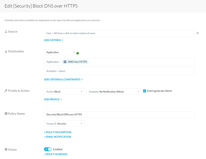 ※ 上記のDNS問い合わせをブロックすると基本的には従来のDNS問い合わせにフォールバックされます。ブラウザ等の一般アプリでは問題なく利用できますが、アプリケーションによっては問題が発生するケースもあります。アプリごとの例外設定を行うことも可能ですので十分な検証を行ってからの適用をしてください。