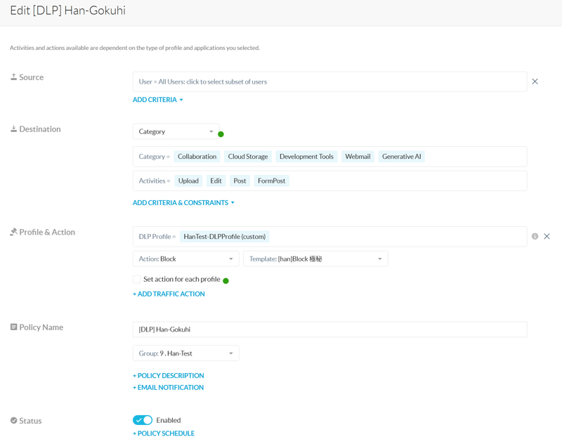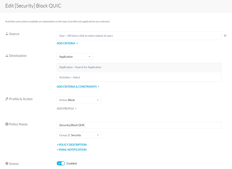 NetskopeはクラウドファイアウォールとCASBが高度に統合しているため、一つの管理コンソールで設定が可能です。