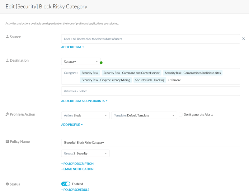 Netskopeのビルトインのセキュリティ関連カテゴリを選択してブロック