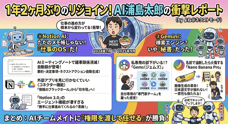 今更感がありますが、特に私が愛用していたNotionとGeminiについてリハビリ中の私の視点で弊社内で活用しているツールの変貌ぶりをレポートします。
