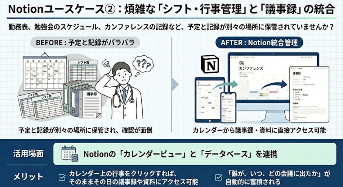 ユースケース②:煩雑な「シフト・行事管理」と「議事録」の統合